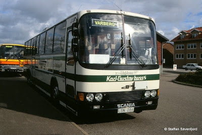 Linjebuss 325 DNY307 Scania L113 Carrus Fifty. Järnvägsstationen, Varberg 1995-09-27.